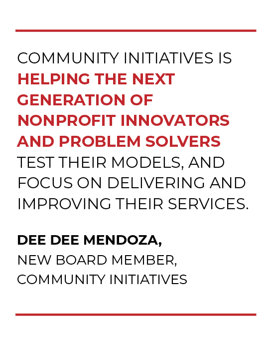 “I’m excited to support Community Initiatives and its portfolio of organizations! I hope to cross-pollinate some of the ideas and strategies of leaders in the private and nonprofit sectors,” said Dee Dee.